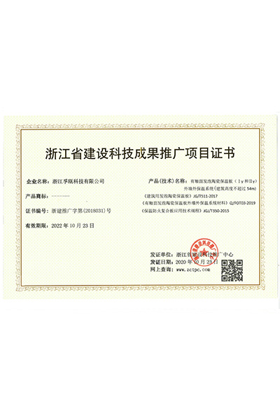 浙江省建設(shè)科技成果推廣項(xiàng)目證書(shū)